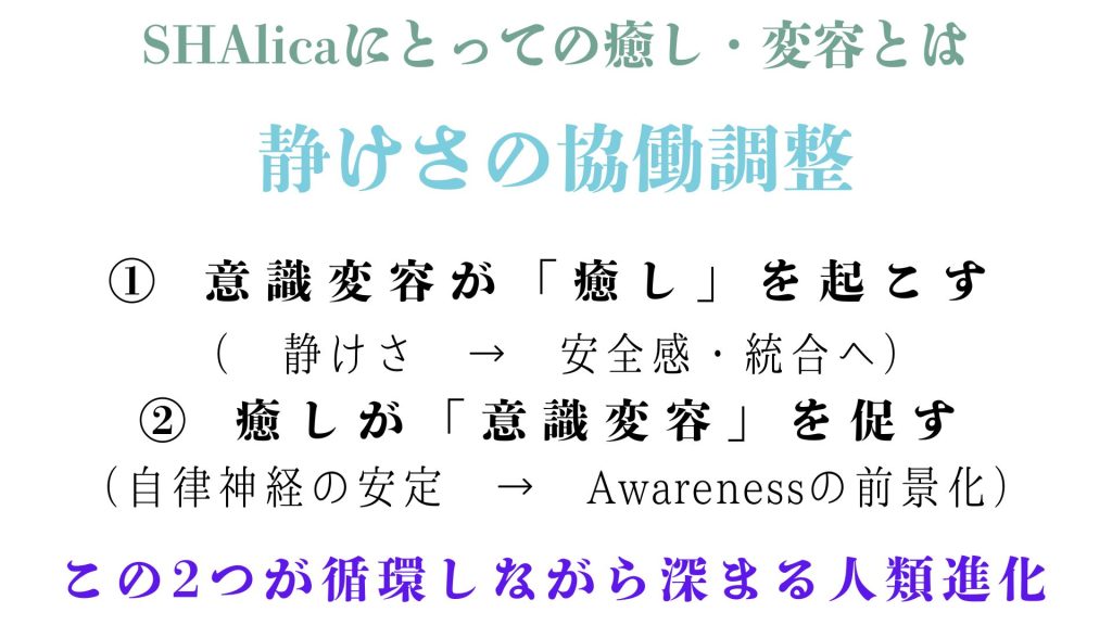 つまり「 意識変容 」が先に起き、その影響で「 癒し 」が自然に深まっていく流れ。